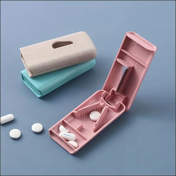 Wenn Ihre Pillen zu groß zum Schlucken sind oder Sie an Schluckbeschwerden leiden, finden Sie hier die Antwort: Unser hervorragender Pillenschneider ist eine großartige Alternative zur Verwendung von Messern oder Scheren. Dank des V-förmigen Halterdesigns, das die Pille während des Schneidens an Ort und Stelle hält, erledigt es die Arbeit schnell und erleichtert Ihnen die Einnahme Ihrer Medikamente.