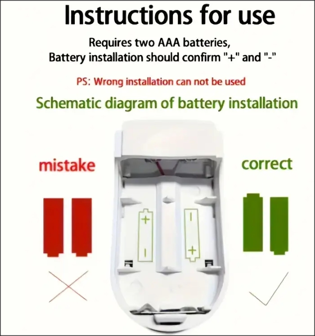 Batterien: Zwei AAA 1,5 V, 600mAh Alkali Batterien