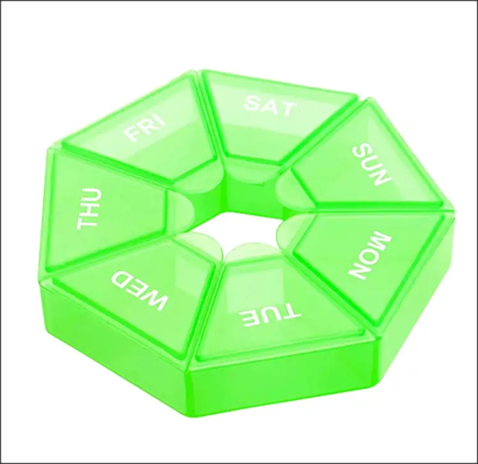 Mit einem ergonomischen, praktischen Design und transparenten, beschrifteten Deckeln passt diese 7 Tage Vitamin - Pillen Box perfekt in jede Tasche, jeden Rucksack, jede Handtasche, jedes Gepäck oder sogar jede Hosentasche und ist damit das ideale Reisezubehör für jedermann!