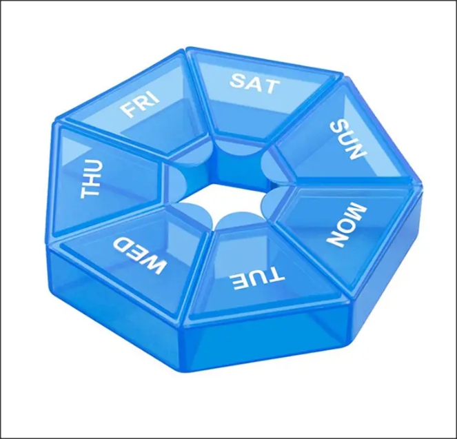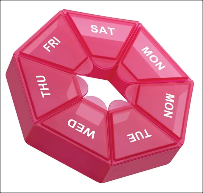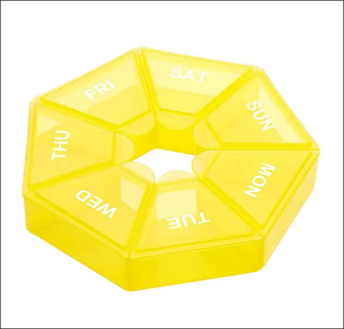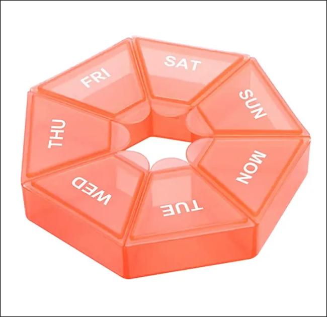 Diese Vitamin - Pillenbox besteht aus hochwertigem, robustem Kunststoff, einem haltbaren Material, das 100 % sicher ist und garantiert der Zeit stand hält.