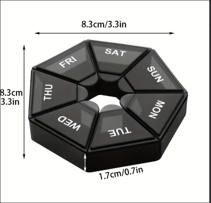 Mit 7 verschiedenen Pillenfächern, eines für jeden Wochentag, ist diese wöchentliche Pillen Dose die perfekte Erinnerung und Organizer für ältere Menschen, Kinder und Erwachsene. Verabschieden Sie sich von vergessenen oder ausgelassenen Dosen und setzen Sie Ihre Behandlung fort, um maximale Ergebnisse zu erzielen!