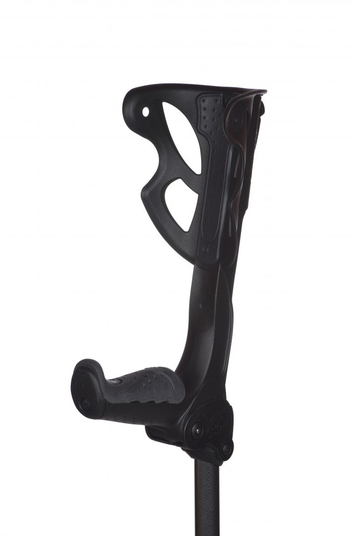 Die Ergodynamic Krücke ist standardmäßig mit rutschfesten Unterarm-, Griffen auflagen die Stoßdämpfend wirken , so wie rutschfesten Füßen ausgestattet.