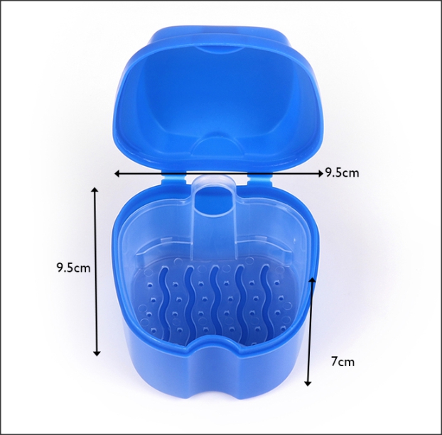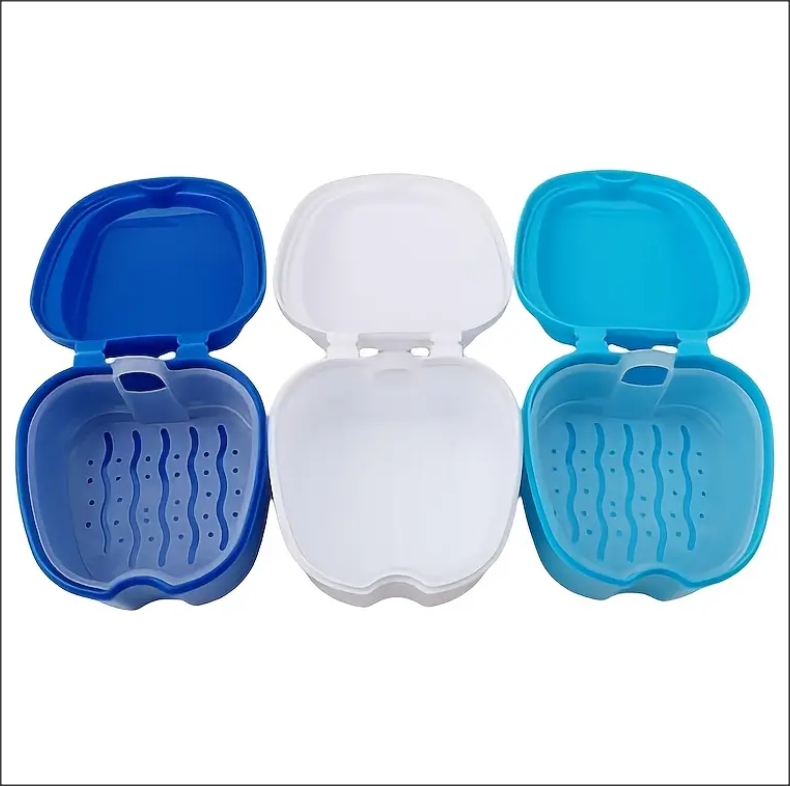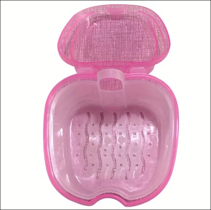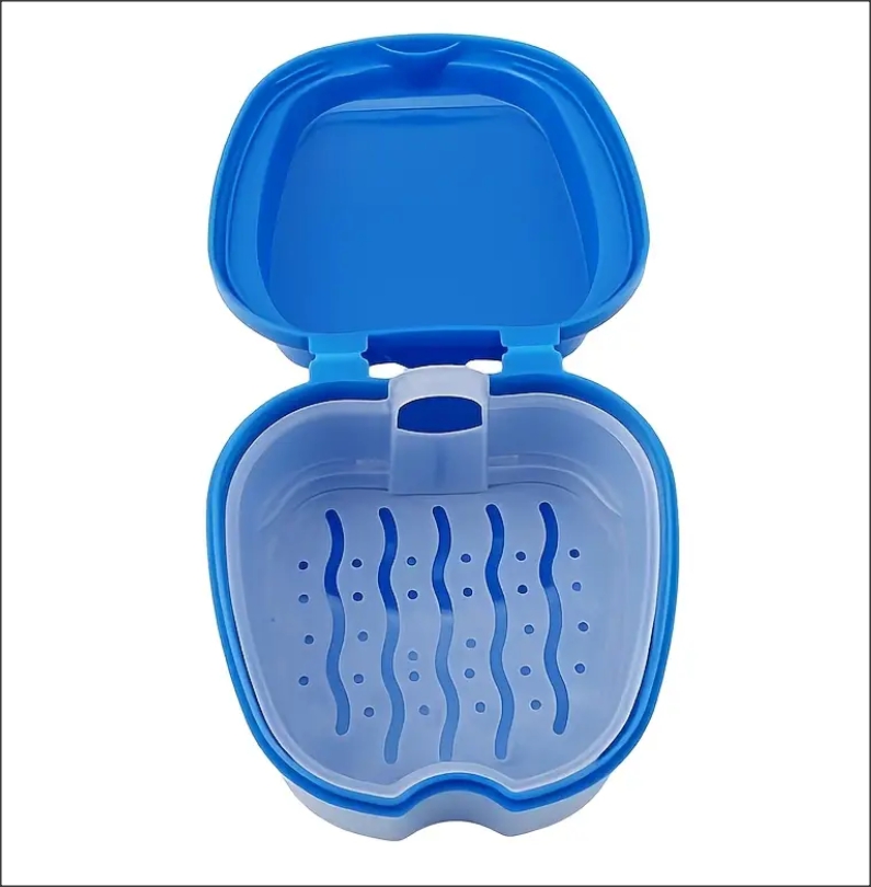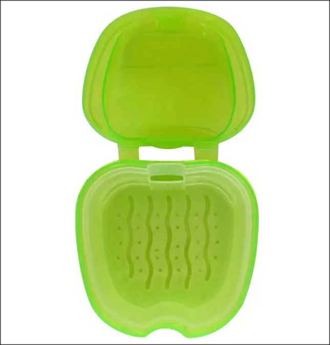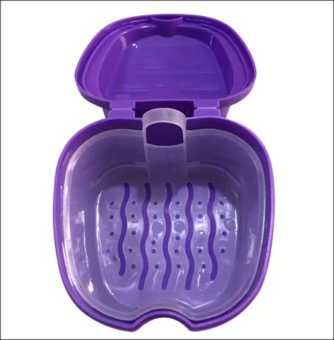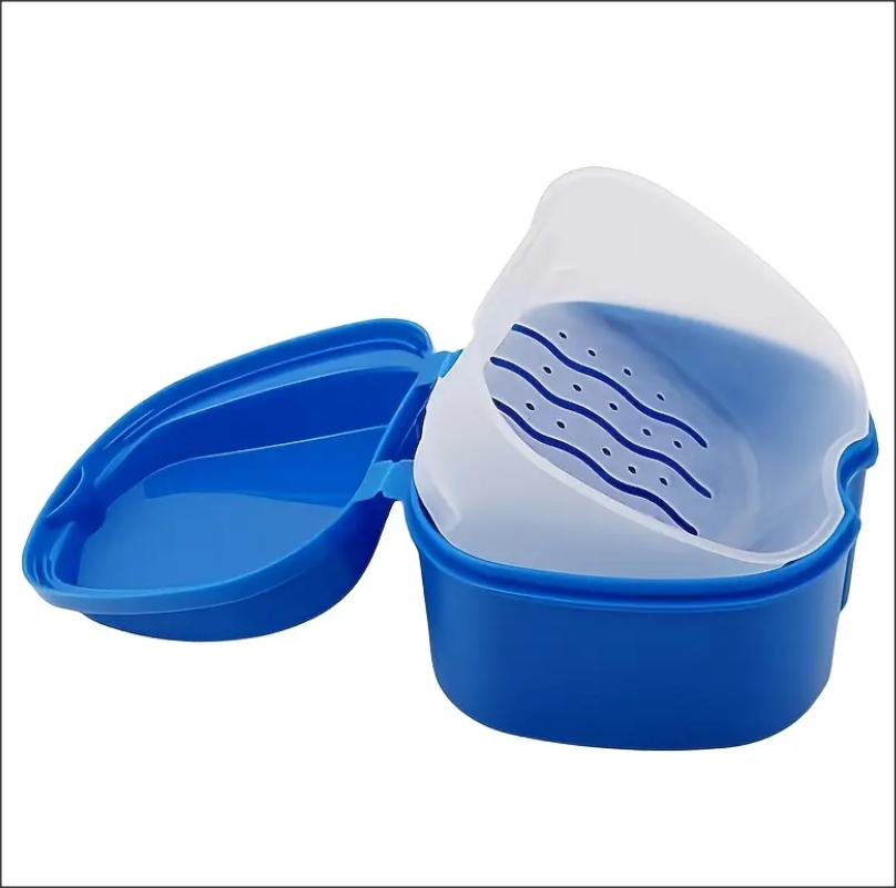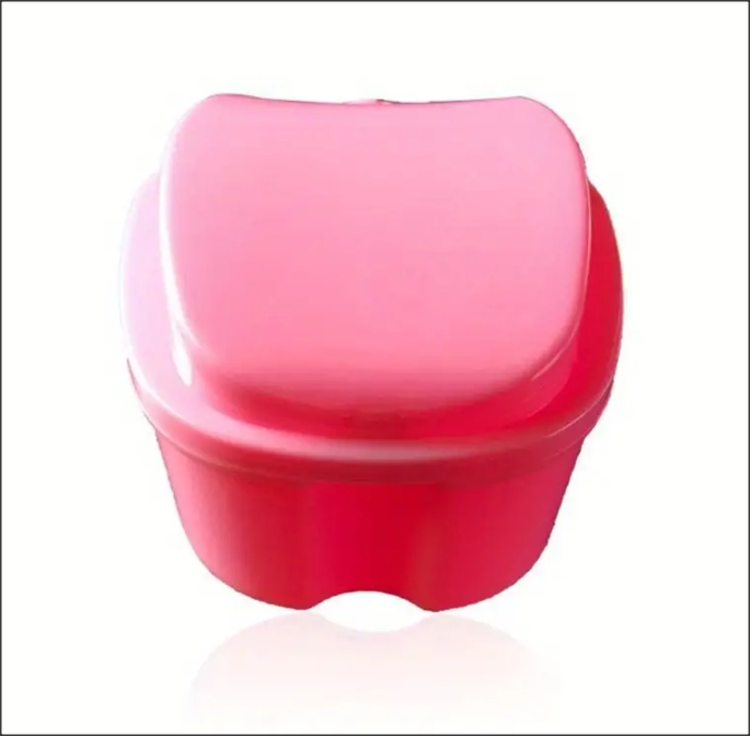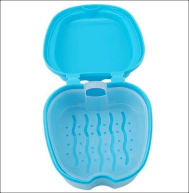 Diese tragbare Box wird speziell zum Aufbewahren oder Reinigen von Zahnersatz verwendet.