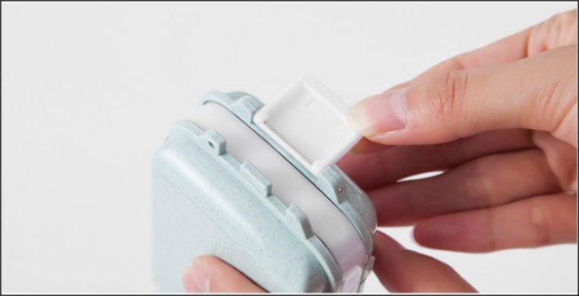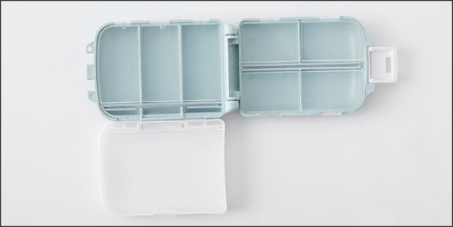 Die Pillen Box ist aus Robusten Kunststoff mit einen zusätzlichen Fach für Karten zb. und der Gleichen
